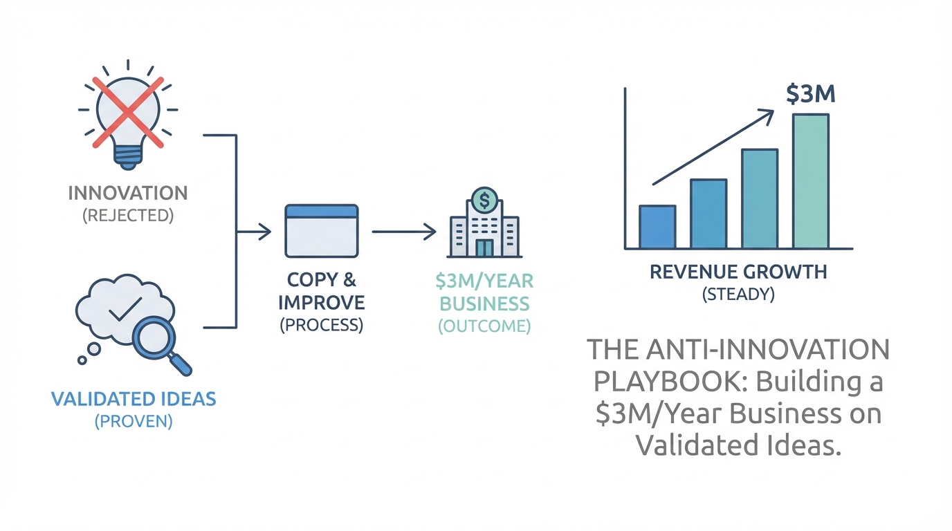 Building a $3M/year business doesn't require you to be a visionary genius who sees a future no one else can. It requires you to be a diligent observer of the present. By finding validated ideas that are currently 'good enough' and making them exceptional through simplicity, you create a moat that is very hard for giants to cross. Giants are too big to be simple; they have too many stakeholders to satisfy.