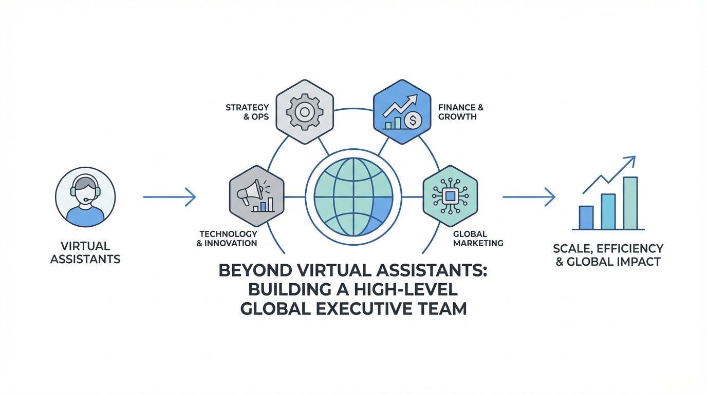 For years, the playbook for scaling a remote company was simple: hire a few virtual assistants (VAs) in the Philippines to handle administrative tasks, save on overhead, and keep the founder focused on growth. But as the market matures and competition stiffens, the definition of a remote leadership strategy is shifting. We are moving away from simple task-delegation toward high-level global executive hiring. Today, smart founders aren't just looking for someone to manage their inbox; they are hiring COOs from South Africa, Controllers from Egypt, and Heads of Marketing from Colombia to run entire departments at a fraction of the cost of a domestic hire.