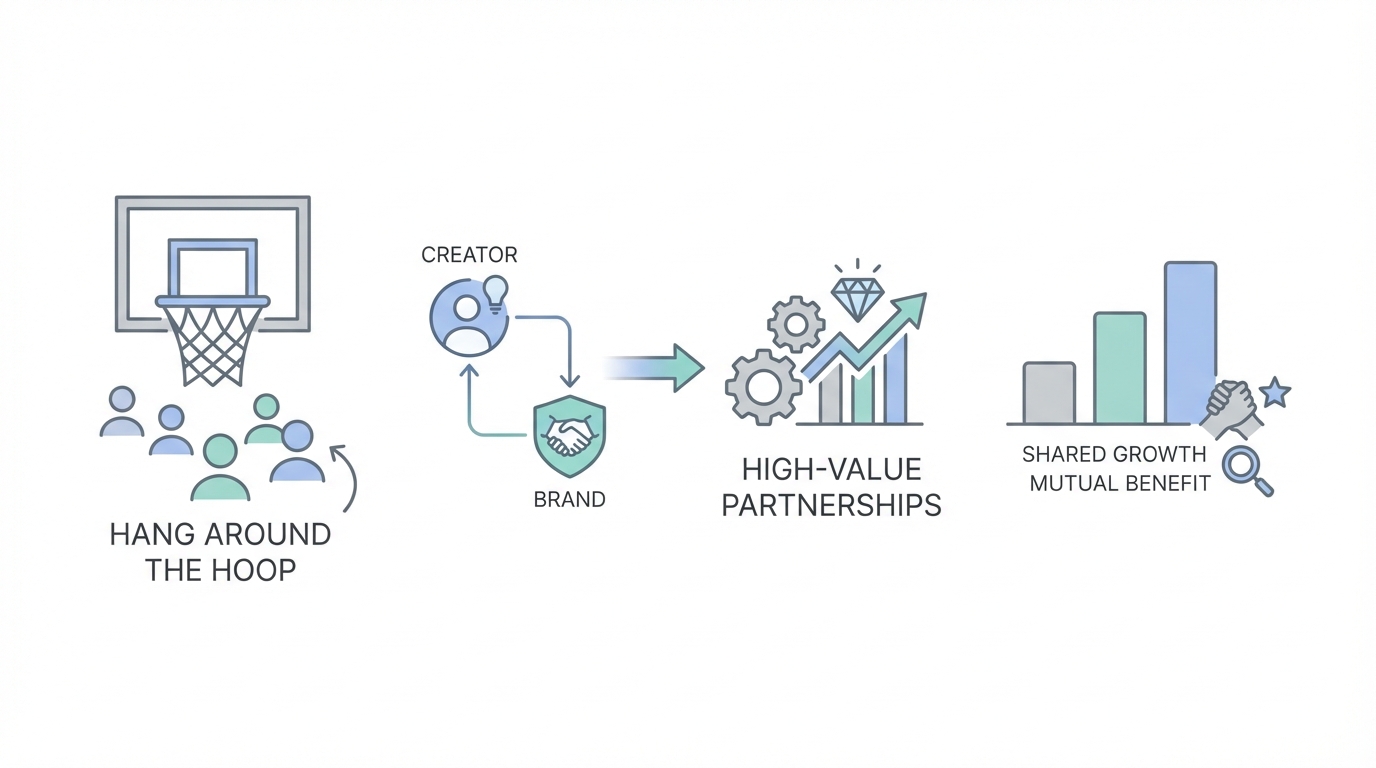 This article deconstructs the 'Hang Around the Hoop' strategy—a networking philosophy that prioritizes the founder over the idea. By reflecting on the experiences of top-tier investors and creators, we can build a framework for creator partnerships that doesn't just generate a few clicks, but builds a sustainable competitive advantage. Whether you are a brand founder or an agency lead, these principles will help you stop guessing and start building business partnerships that actually compound.