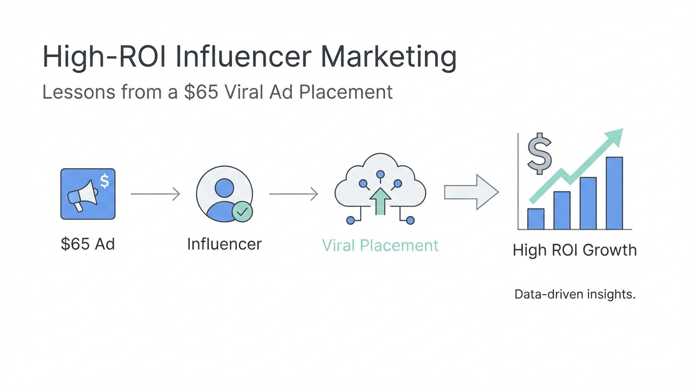 High-ROI influencer marketing is no longer about who has the biggest budget; it is about who has the best data and the fastest execution. The $65 ad placement that built a multi-million dollar business proves that the 'First Mover' advantage is alive and well. By validating your ideas, using scarcity effectively, and identifying underpriced viral windows, you can achieve growth that traditional advertising simply cannot match.