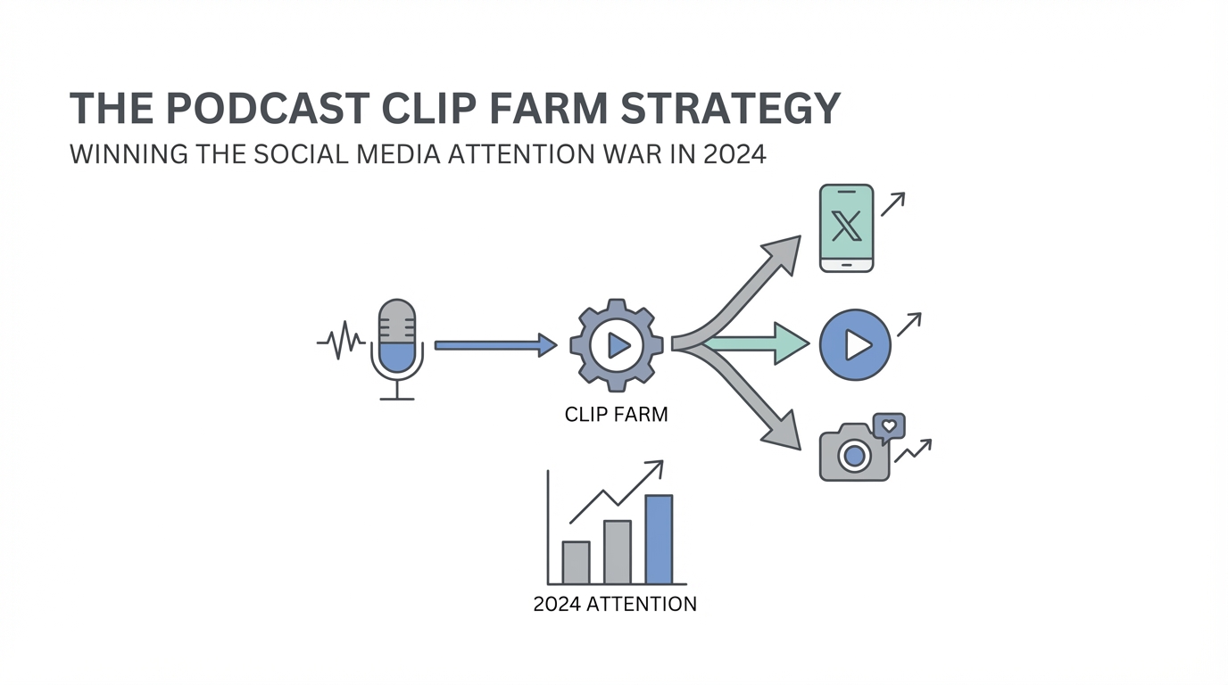If you want to win the attention war, you have to "be Walmart." You need to turn out content at a volume that ensures your brand is seen 30 times for every one time a competitor is seen. This requires a shift in mindset: your podcast is now a "clip farm." This short form video marketing strategy isn't about artistic perfection; it's about repurposing long form content into a machine that produces a moral victory of views every single day.