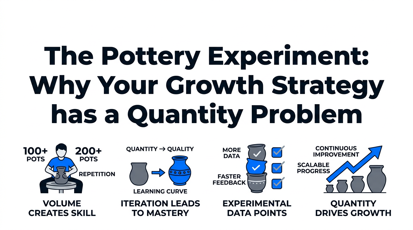 Whether you are a founder looking for product-market fit or a marketer trying to scale an app install campaign, remember the lesson of the ceramics class. The 'Quantity' group didn't just make more pots; they made better pots because they allowed themselves to learn through doing. High-output intensity is the ultimate competitive advantage.