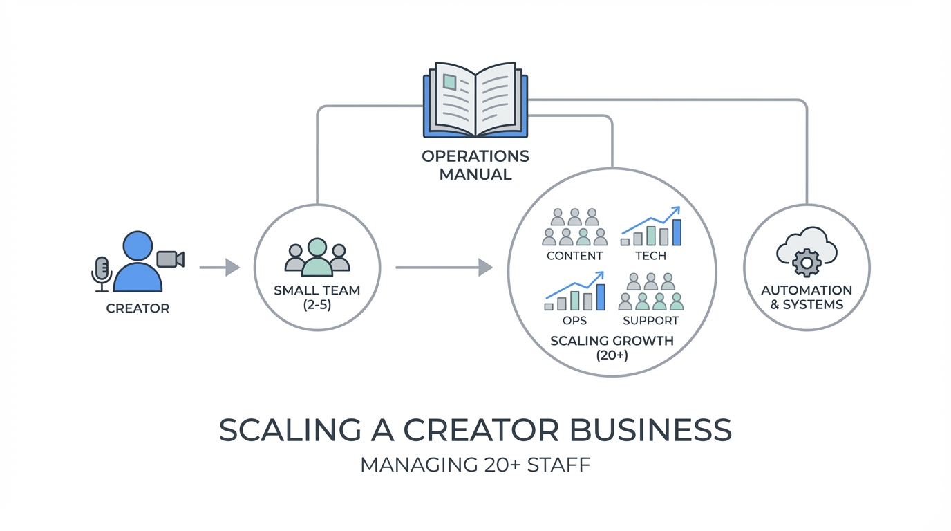 Scaling to over 20 staff members requires a traditional corporate structure adapted for the creator economy. You cannot manage 20 people directly without losing your mind. Instead, you need a leadership layer that shields you from the day-to-day noise.