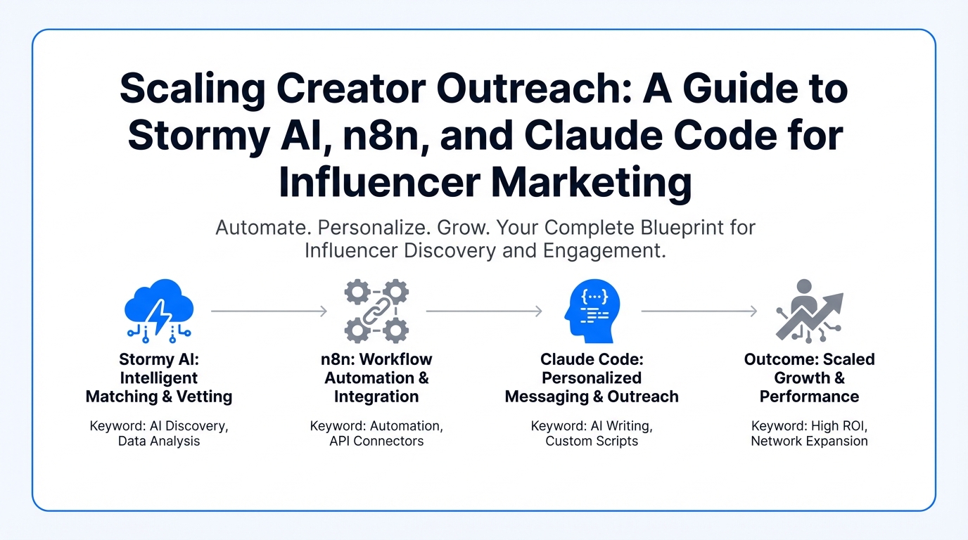 Imagine a scenario where a marketing team of three is replaced by a single, high-performing 58-minute workflow. In this new reality, niche research, landing page creation, and sourcing 50+ UGC (User Generated Content) creators happen simultaneously while you sip your morning coffee. This isn't a futuristic dream—it's the power of Agentic Marketing. By combining strategic reasoning, workflow orchestration, and specialized execution, brands are moving away from the manual grind and toward a scalable influencer marketing automation engine. The old ways of manual spreadsheets and one-off emails are being replaced by a cohesive stack: Stormy AI, n8n, and Claude Code.