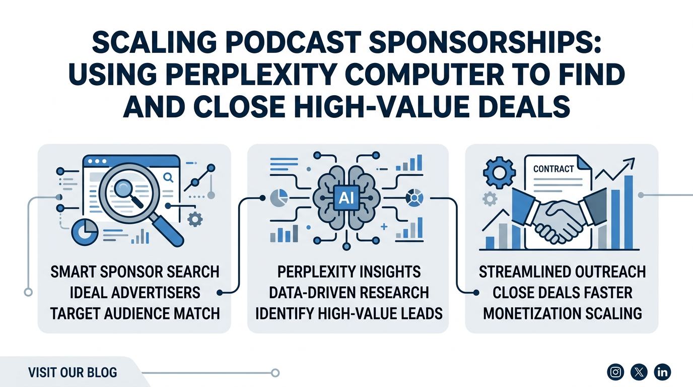 Securing high-value sponsorships is the lifeblood of the creator economy, yet for most podcasters and brand marketers, the process remains a manual, exhausting grind. You spend hours listening to rival shows just to hear their ad reads, digging through LinkedIn for the right marketing contact, and crafting emails that often disappear into the void. But the landscape is shifting. With the advent of agents like Perplexity Computer, the barrier between a niche show and a revenue-generating powerhouse is no longer a dedicated sales team—it is sophisticated influencer marketing automation. This playbook reveals how to identify exactly who is spending money in your niche and how to automate the pitch process from discovery to the final close.