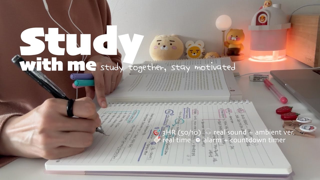 🪴3HR STUDY WITH ME(50/10)ㅣReal Sound + Ambient Ver.ㅣPomodoro with Timer