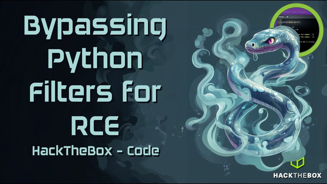 ![Bypassing Python Filters [Code - HackTheBox]](https://i.ytimg.com/vi/qgOb2BDnkHI/maxresdefault.jpg)