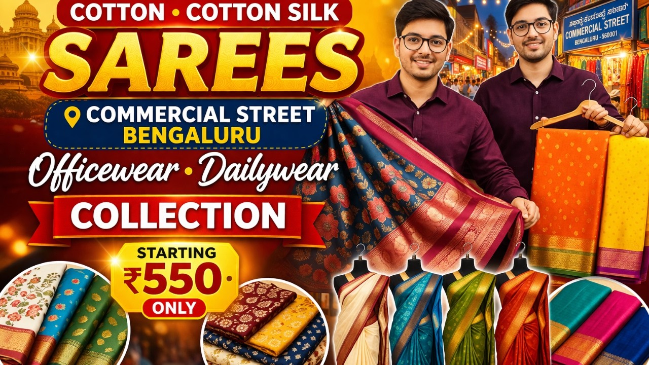 Latest Office Wear Daily Wear Sarees Collection in Commercial Street Bengaluru Starting ₹550#saree